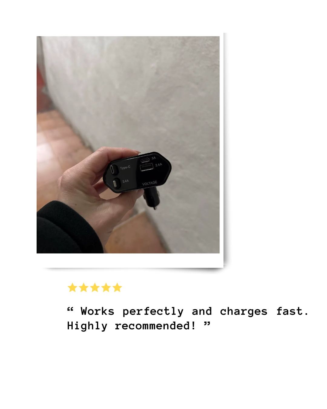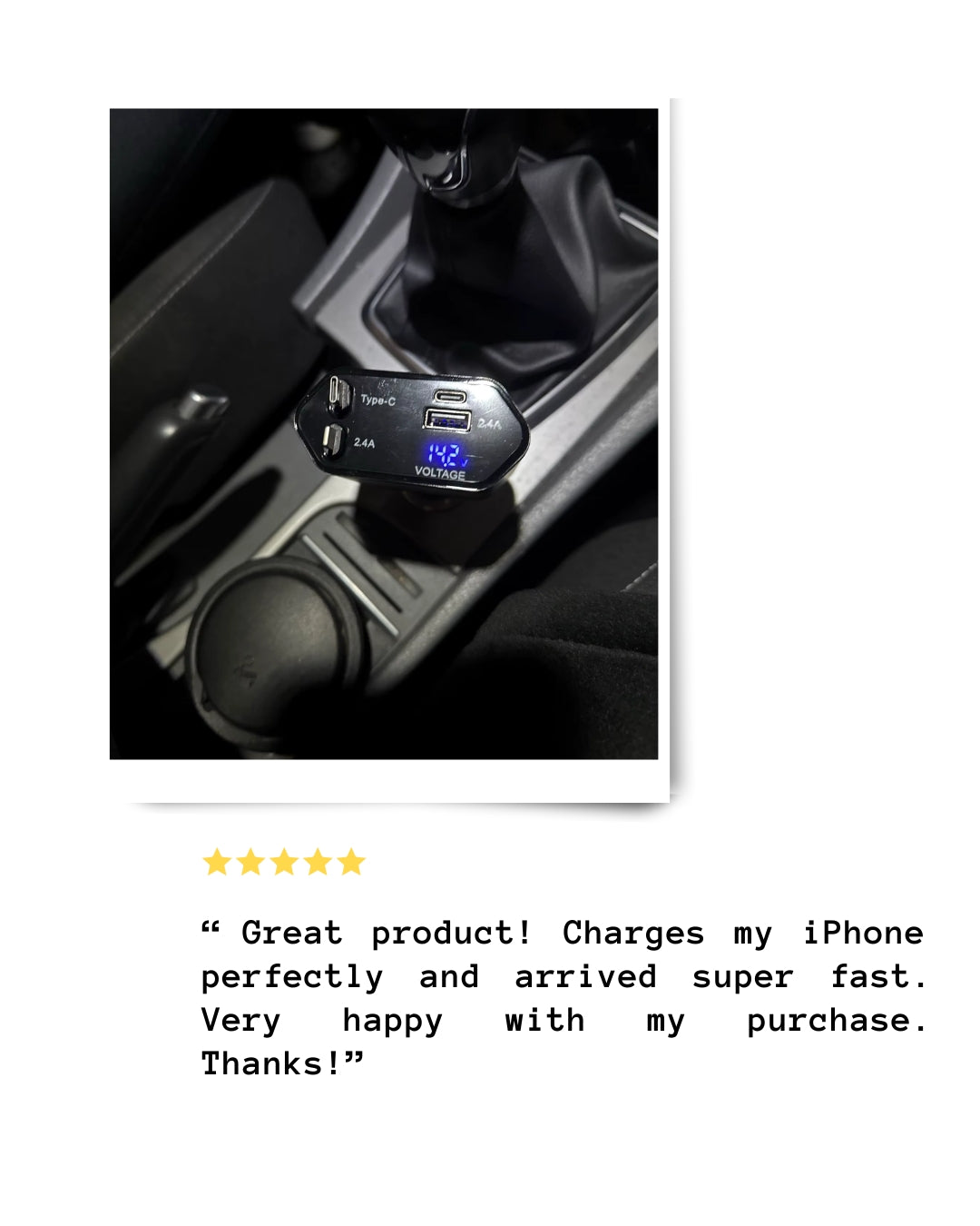 - Adjustable Charging Head: Flexible charging head for easy use in any car setup.