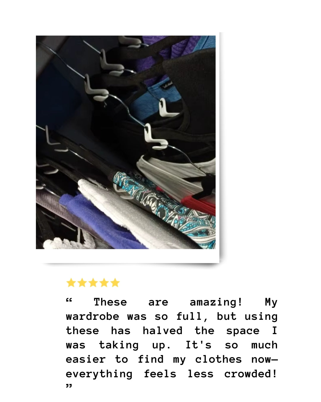 - Space-Saving Design: Connect multiple hangers to maximize closet space.